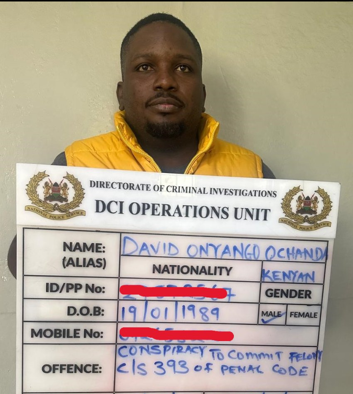 The DCI has stated that Ochanda is currently in custody and is undergoing standard processing procedures.