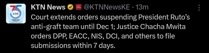 In his directive, the judge asked several key government institutions, including the Office of the Director of Public Prosecutions, the Ethics and Anti-Corruption Commission, the National Intelligence Service, and the Directorate of Criminal Investigations, to provide written submissions within seven days.
