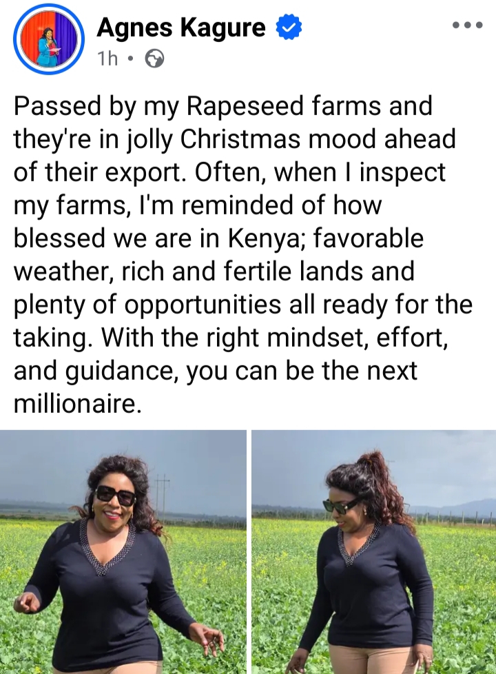 Agnes Kagure recently visited her rapeseed farms in Kenya, walking through fields where the plants were healthy and ready for harvest. The crops, standing tall under a clear sky, reflected the work put in over the months.