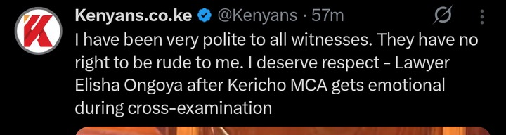Speaking after the incident, Ongoya made it clear that he has always conducted himself professionally and treated all witnesses with courtesy.