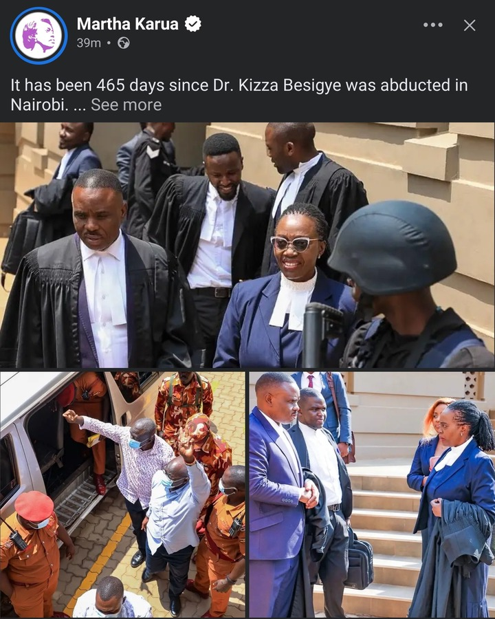 Lawyer Martha Karua On Tuesday, 24, appeared in Kampala, Uganda, as the legal representative of opposition leader Dr. Kizza Besigye.
