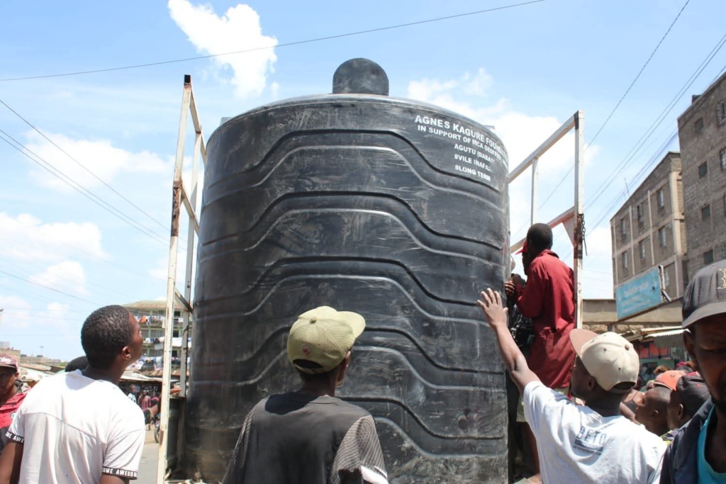 Refusing to let the matter be ignored, Babaa kept pushing officials to respond. He followed up repeatedly, reminding them of the tough reality families were living with. His persistence paid off when three large water tanks were finally delivered to Kariobangi North.