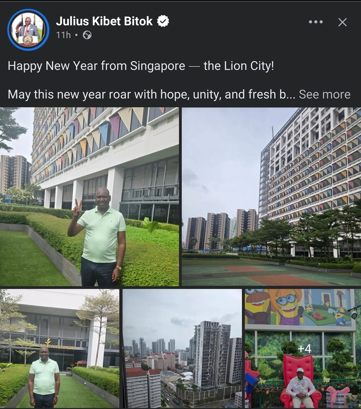 Taking to social media on Wednesday, December 31, PS Bitok posted a message from the city-state, popularly known as the Lion City.In his post, he extended warm wishes for the year ahead, expressing hope, unity, and new beginnings.