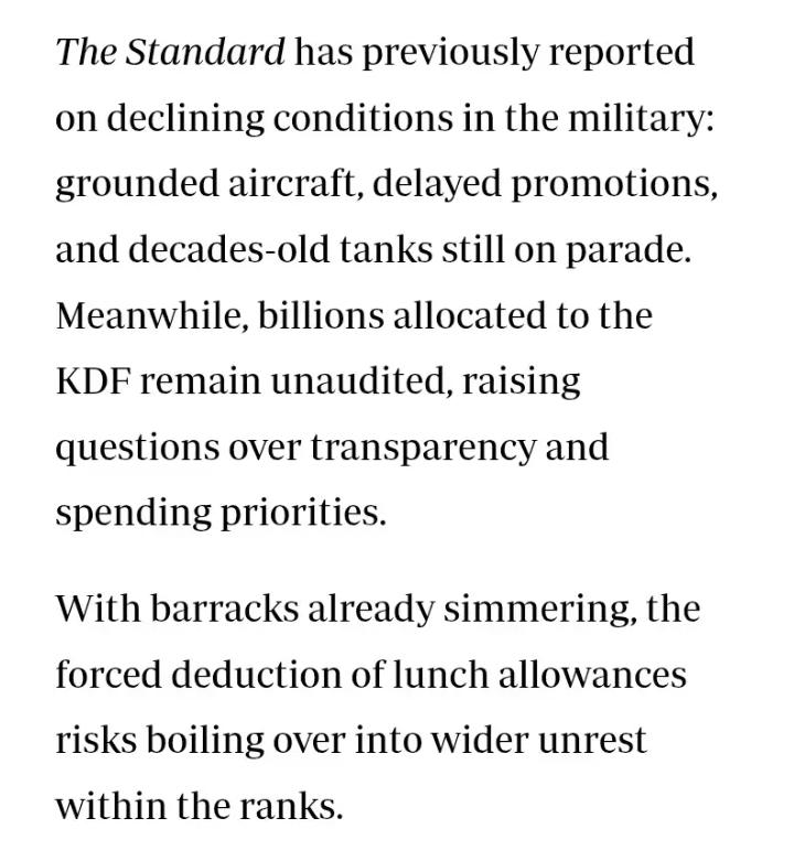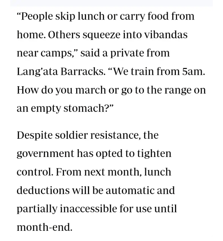 That silence is only making things worse. The signs are already showing that the forced deduction of lunch allowances could boil over into something much bigger. The mood in many barracks is tense.
