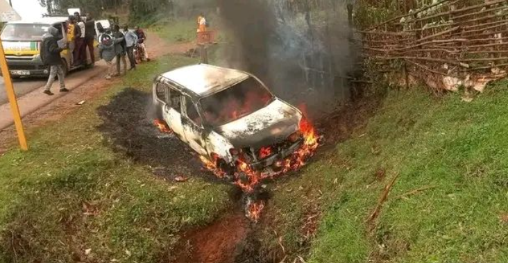 Probox torched in Keroka as supporters of Fred Matiang’i clash with suspected goons